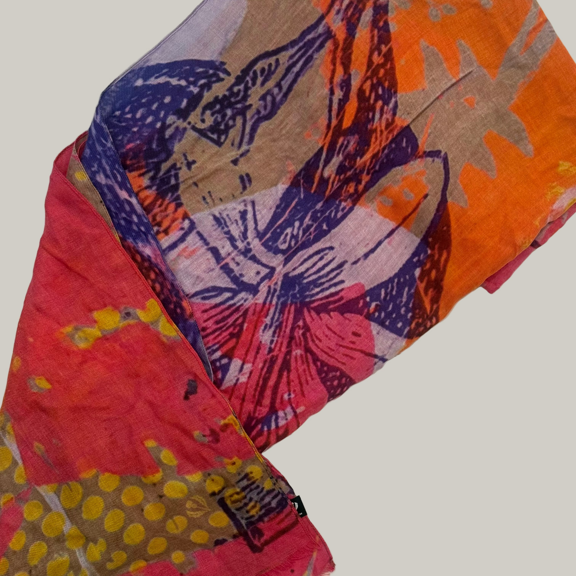 Wrap yourself in whimsy with the Fraas patterned scarf! Lightweight and fringed for extra flair, this playful accessory adds a pop of personality to any look while keeping you cozy without the bulk. Material is 100% viscose.