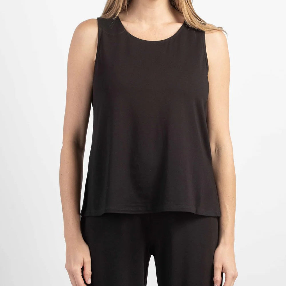 Let your unique style shine with Habitat's Easy Tank! From day to night, this relaxed fit tank is a must-have for fashion-forward individuals. Stay cool and chic with its sleeveless design and side slits, this tank has got your style and comfort covered. Material is 95% rayon, 5% spandex.