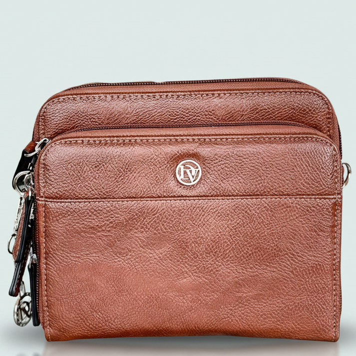 The La Diva Top Zip Crossbody Purse is your fun and functional sidekick! With a top zip closure and a variety of pockets—including front, back, slip, and organizer card slots—this purse keeps your essentials neatly in place. Its compact size (7.5”H x 6.5”W x 1.25”D) and 25” crossbody strap drop make it perfect for hands-free adventures with a splash of playful charm.