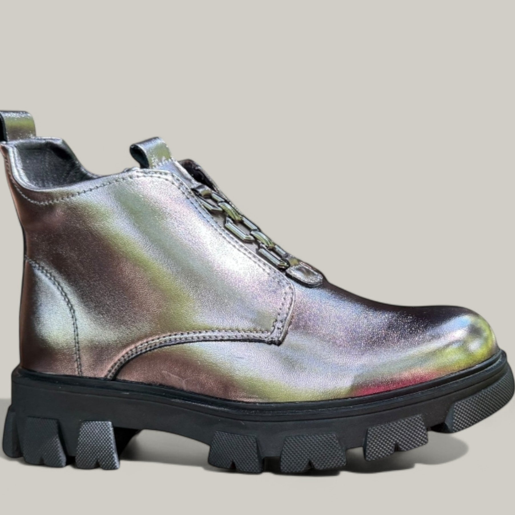 Step out with flair in the Little Empresses boots! Crafted from vegan patent leather, these sleek boots feature a playful front buckle and a convenient side zip for effortless on and off. Their shiny finish brings a fresh, modern vibe that effortlessly fits both casual and dressy occasions—style with heart and no shortcuts, just pure confidence!