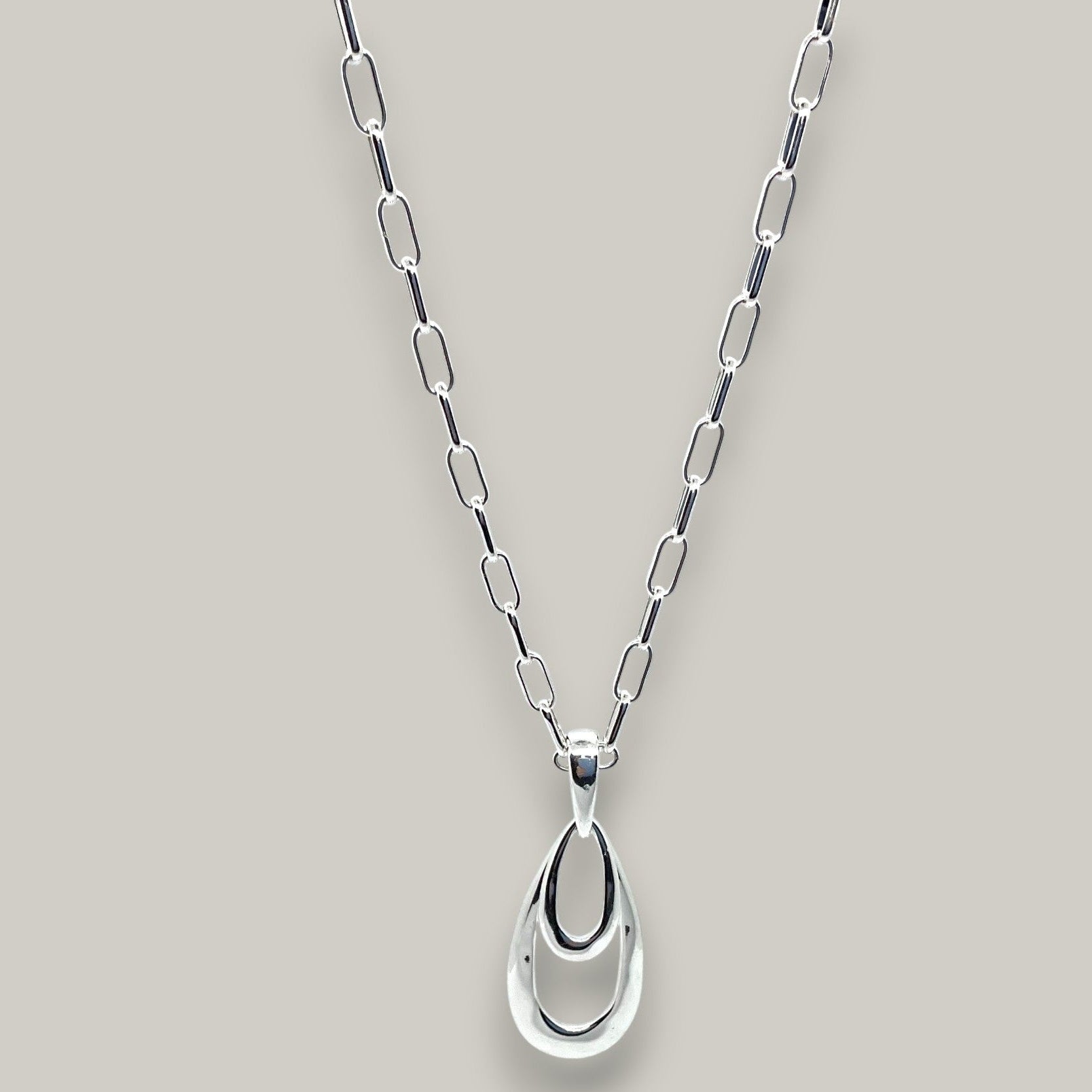 Introducing the Merx—where liquid elegance meets wearable art. This fluid teardrop pendant catches the light with its smooth, sculptural finish, suspended from a contemporary elongated-link chain that moves with you. Minimalist in design yet impossible to ignore, it's the kind of piece that whispers sophistication without demanding attention. It transforms any outfit from ordinary to effortlessly chic. A modern essential for those who believe jewelry should be both seen and felt.