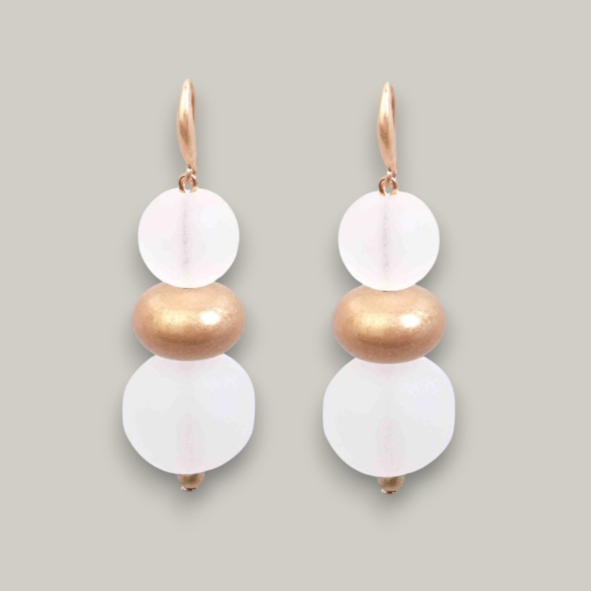 Discover understated luxury with the Merx Frosted Sphere Drop Earrings. Three perfectly paired beads—frosted and satin-finished—cascade in a gentle drop that catches light without demanding attention. Weightless and sculptural, these earrings slip seamlessly from morning coffee to evening plans. Modern minimalism meets tactile charm, making them the go-to piece for anyone who believes the best accessories feel like second nature.