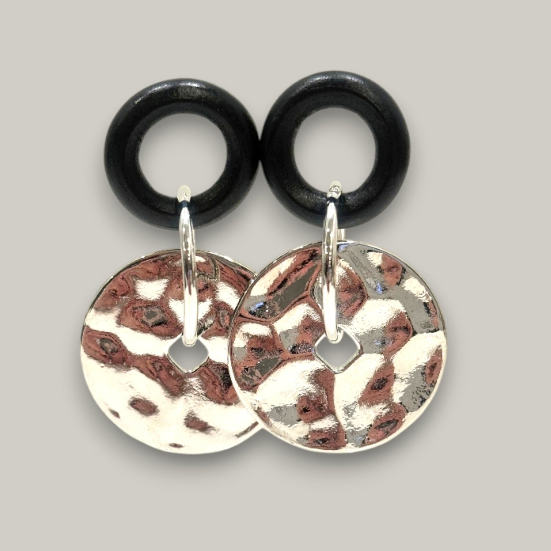 Make a statement with the Merx Modern Eclipse Hoop Earrings! Featuring bold matte black rings paired with rippled silver discs, these lightweight earrings bring a sleek, artistic vibe to your look. Perfect for adding a playful, modern edge that turns heads wherever you go.