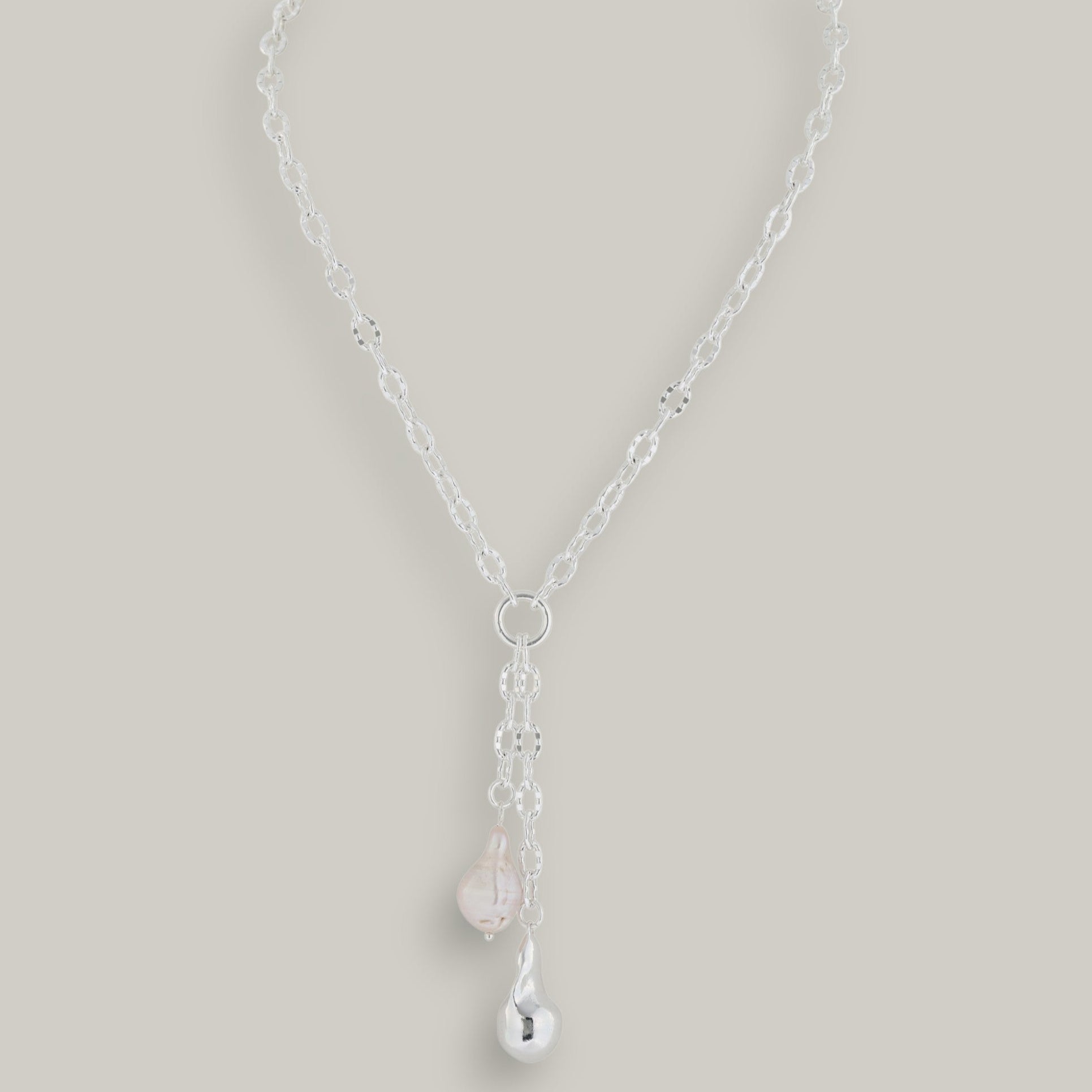 Merx - Silver & White Pearl Droplet Necklace