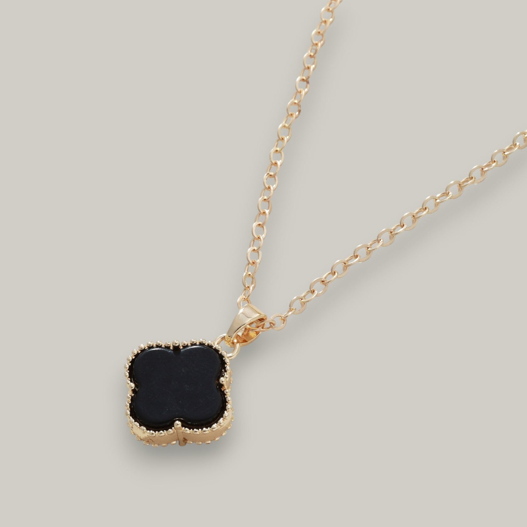 Brighten your day with the Merx Two-In-One Reversible Pendant Necklace! This delicate gold necklace features a charming clover pendant that flips between sparkling pavé and smooth black enamel. Whether you’re feeling glittery or sleek, it’s your perfect little surprise to match every mood and moment.