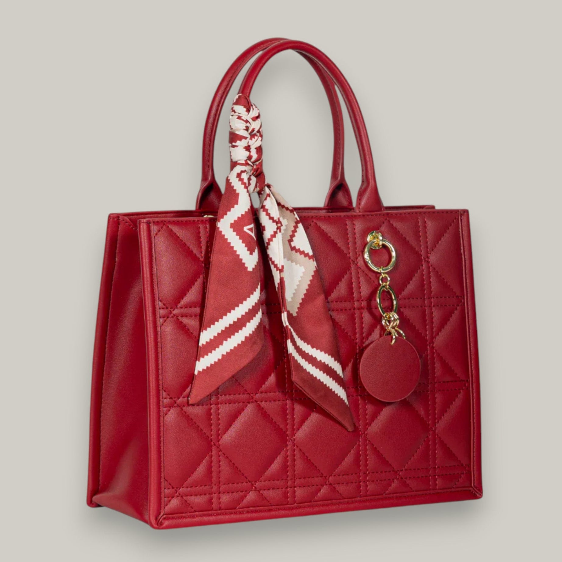 Add a splash of fun to your outings with the Miss Caprice Amber Purse. This structured quilted tote combines timeless charm with a playful edge, featuring a chic scarf detail and light gold hardware for a modern touch. Perfect for everything from casual strolls to elegant dinners, it keeps your style fresh and fabulous wherever you go!