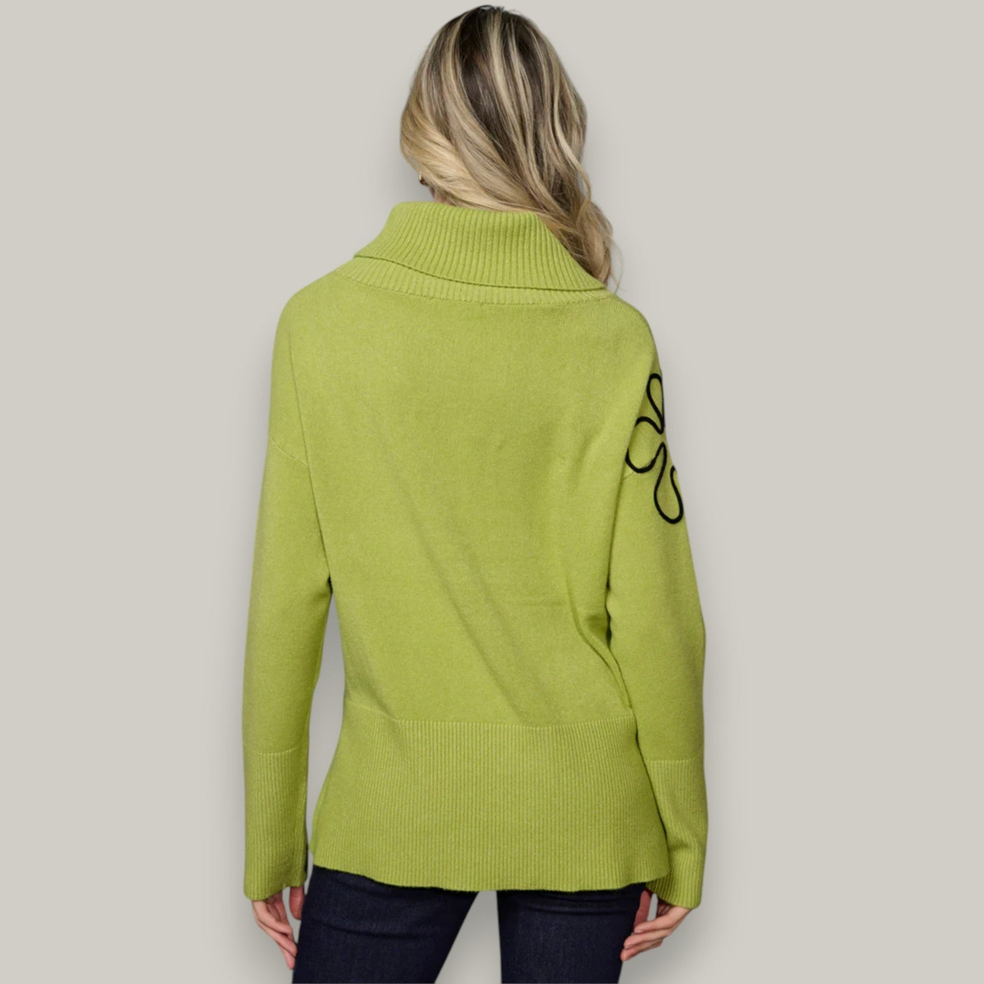 Bring a playful touch to your autumn wardrobe with the Picadilly Floral Embroidered Sweater. Featuring vibrant floral embellishments on cozy sweater-knit fabric, this medium-length top boasts a flattering cowl neckline and relaxed fit. Side slits add extra comfort, while rich seasonal colors offer an earthy pop perfect for fall. Pair it with neutral trousers for an effortlessly chic look that’s as fun as it is stylish. Material is 40% viscose, 32% polyester, 28% nylon.
