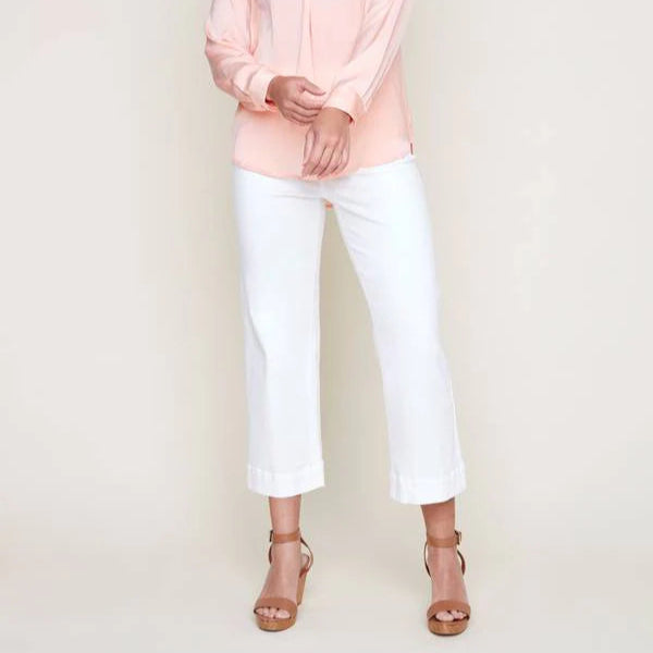Elevate your denim game with Renuar Cropped Wide Leg Jeans. Designed for style and comfort, these jeans feature a flattering silhouette, front patch pockets, and superior quality. With a 25-inch inseam, perfect fit is guaranteed. Upgrade your wardrobe with this perfect blend of fashion and function today. Material is 52% cotton, 41% tencel, 5% polyester, 2% spandex.