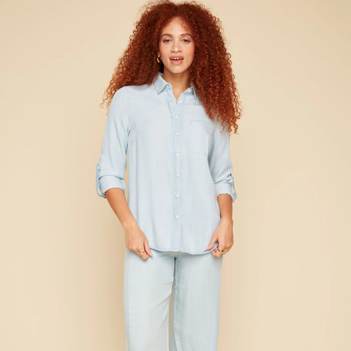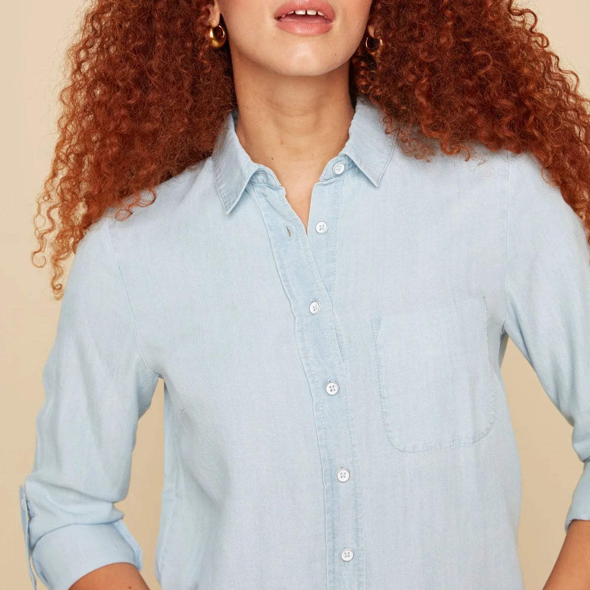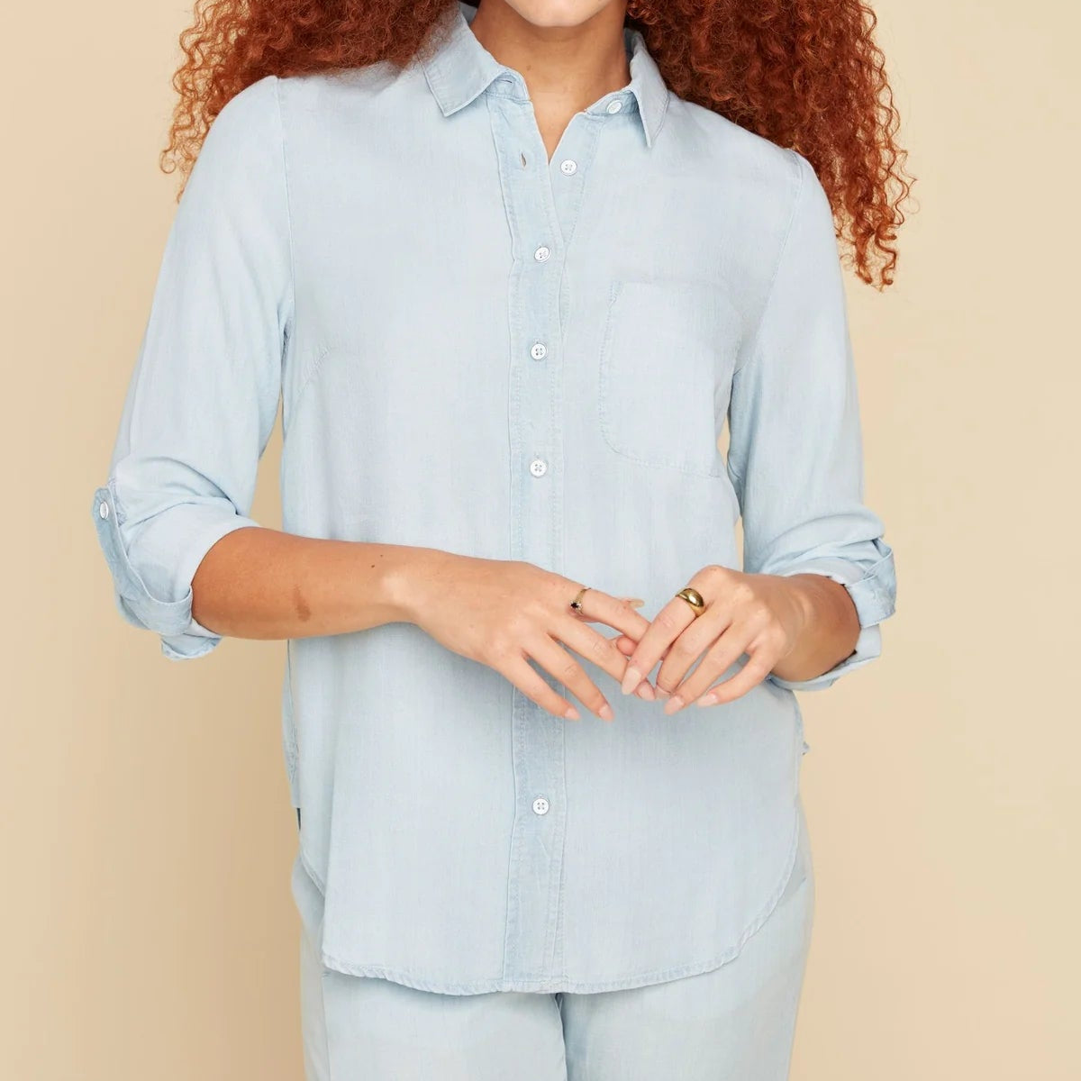 Introducing the versatile and stylish Renuar long sleeve tencel blouse! Designed with a tencel fabric, generous straight cut, and casual style, this ultra-practical top is a must-have for any wardrobe. Perfect for effortlessly matching with any outfit, get ready for your new favorite go-to item! Material is 100% tencel.