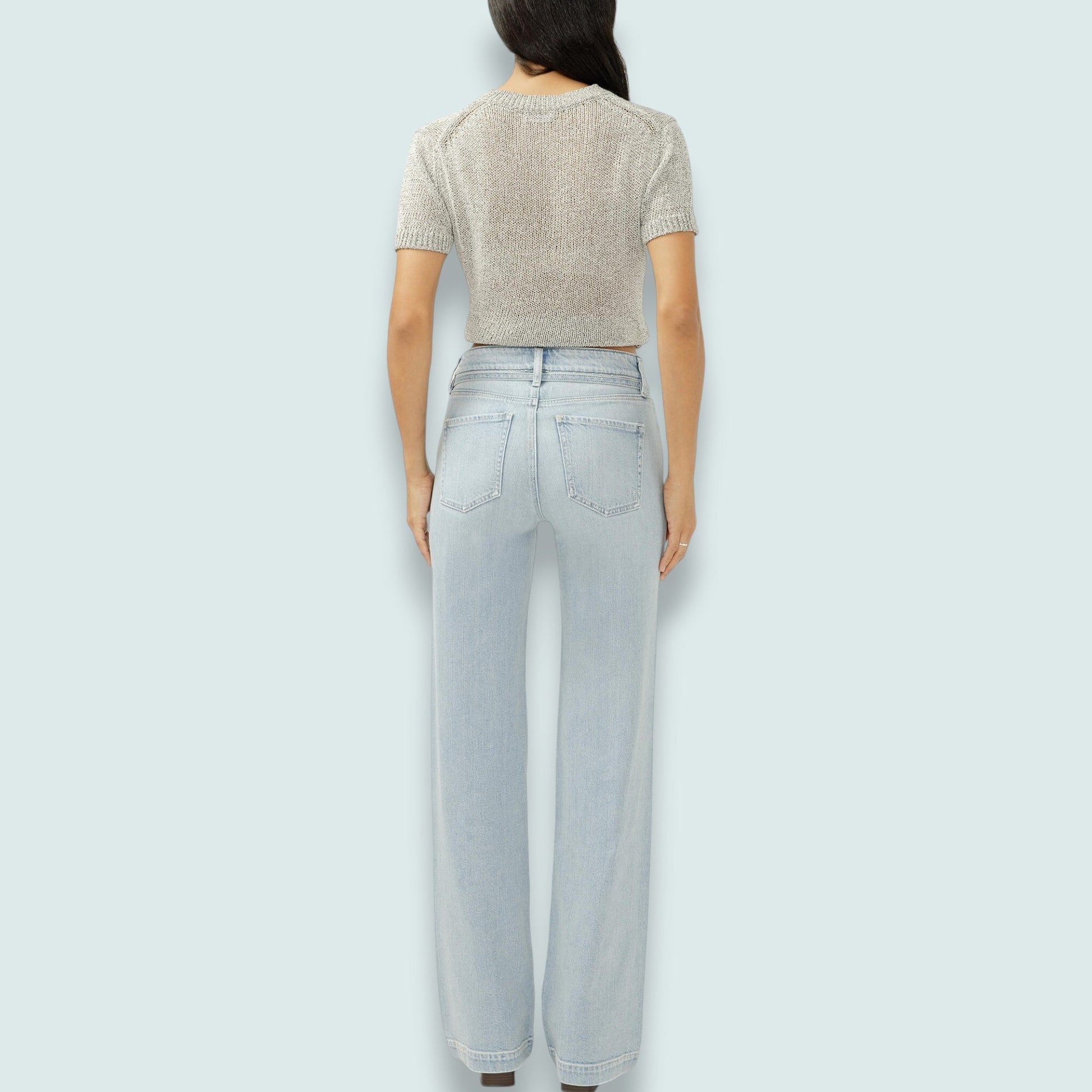 Avery High Rise Trouser Jeans are engineered for curves—featuring a contoured waistband that eliminates gapping while hugging your hips and thighs. The 10.25" high rise delivers full coverage, paired with a trouser-style leg opening of 19.5" for a polished silhouette. Light indigo wash, 5-pocket construction with zip fly and button closure. Designed for those seeking a smaller waist with fuller curves. Material is 68% cotton, 31% lyocell, 1% elastane.