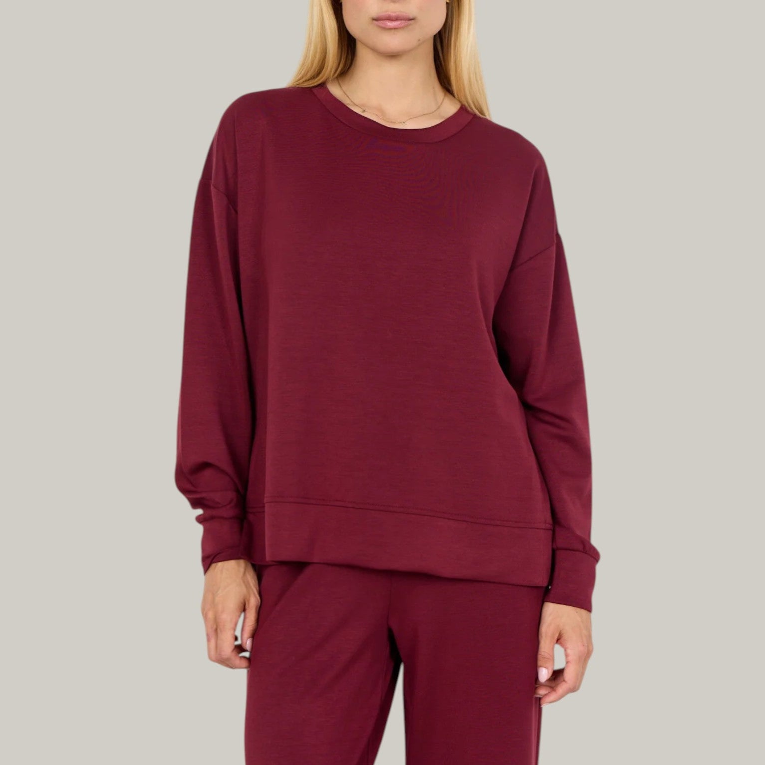 Experience ultimate comfort with this sweatshirt made from a soft blend of fabrics. Featuring a loose fit, classic crew neck, and long sleeves, it’s ideal for relaxing or layering up. Match it with a vibrant printed skirt and your favorite sneakers for a stylish, laid-back outfit that’s both comfy and cool! Material is 48% modal, 48% polyester, 4% elastane.