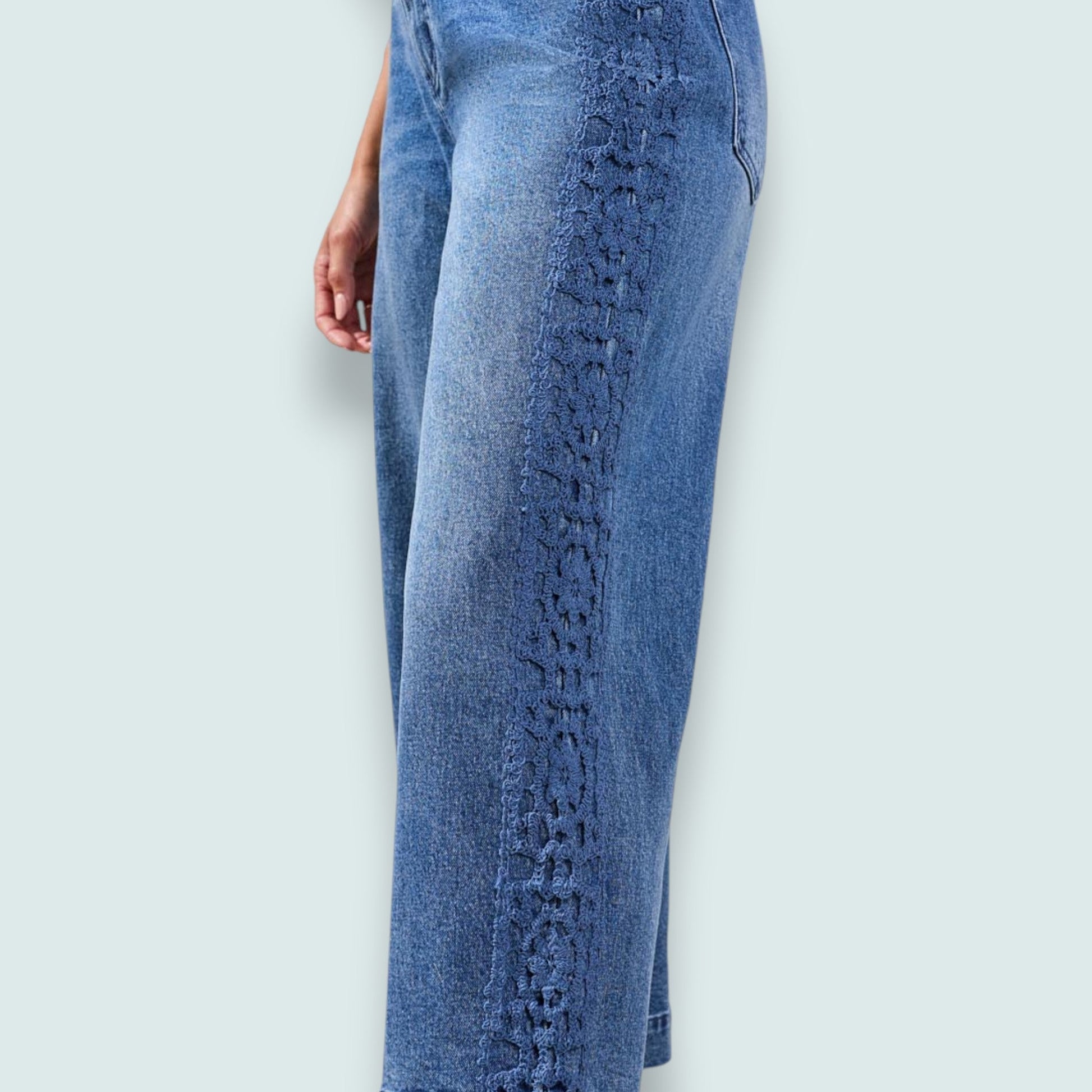A modern update to everyday denim, the Audrey wide crop jean features a flattering mid-rise fit with a relaxed, wide-leg silhouette. Designed with side crochet detailing for added visual interest, this pair strikes the perfect balance between polished and laid-back. The cropped length showcases your favourite footwear beautifully, while the soft denim blend ensures comfort from morning to night. Effortless and endlessly versatile, it's your new essential for elevated casual dressing. Material is 95% cotton, 4% polyester, 1% spandex.