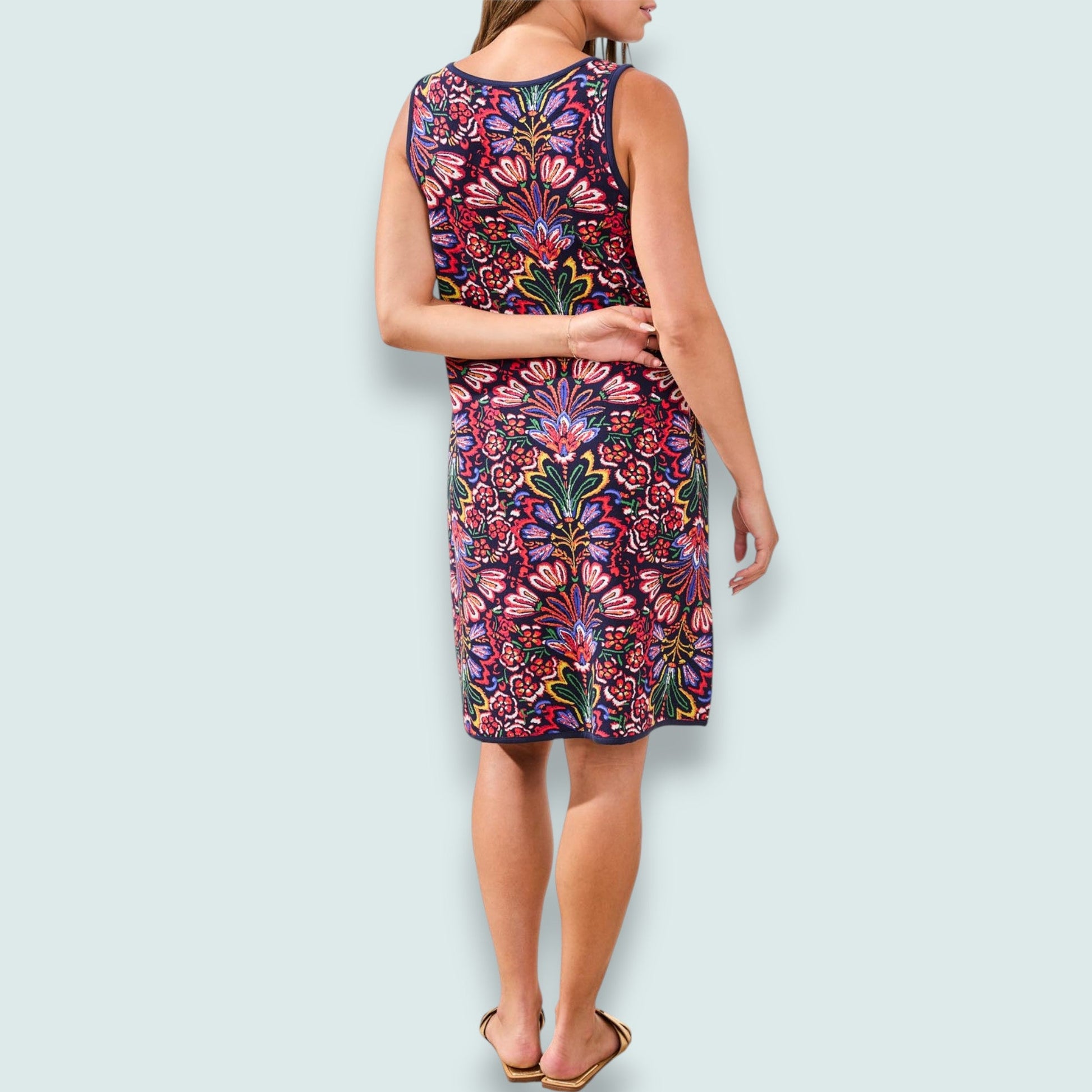 Double your wardrobe instantly with this clever reversible A-line dress! Crafted from bonded knit for a polished, structured silhouette, it flips between a sleek solid colour and a tropical print—giving you two complete looks in one piece. Perfect for minimalist packing and weekend escapes, wear it casual or dress it up depending on your mood and the occasion. One dress, endless possibilities. Material is 95% rayon, 5% spandex.