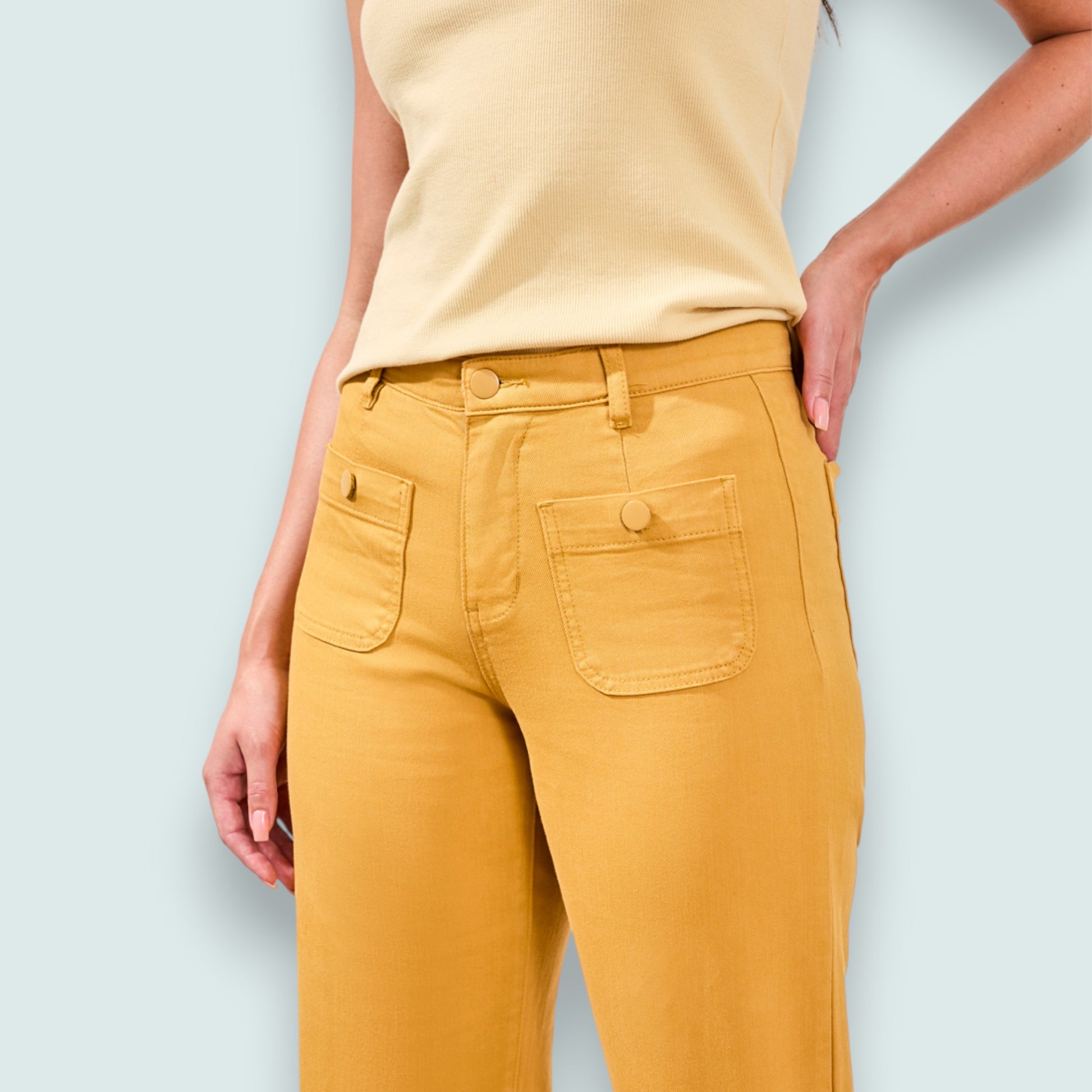 Bold and modern, the Sophia Hugging Crop Palazzo in Colored Stretch Denim turns heads with its vibrant hues and dramatic, flowing leg. The sculpting hugging fit paired with advanced stretch fabric keeps you comfortable all day, while the cropped silhouette adds that perfect trend-forward edge. Whether you're dressing up or keeping it casual, these jeans deliver the confidence and versatility every season demands. Material is 63% cotton, 25% polyester, 10% lyocell, 2% spandex.